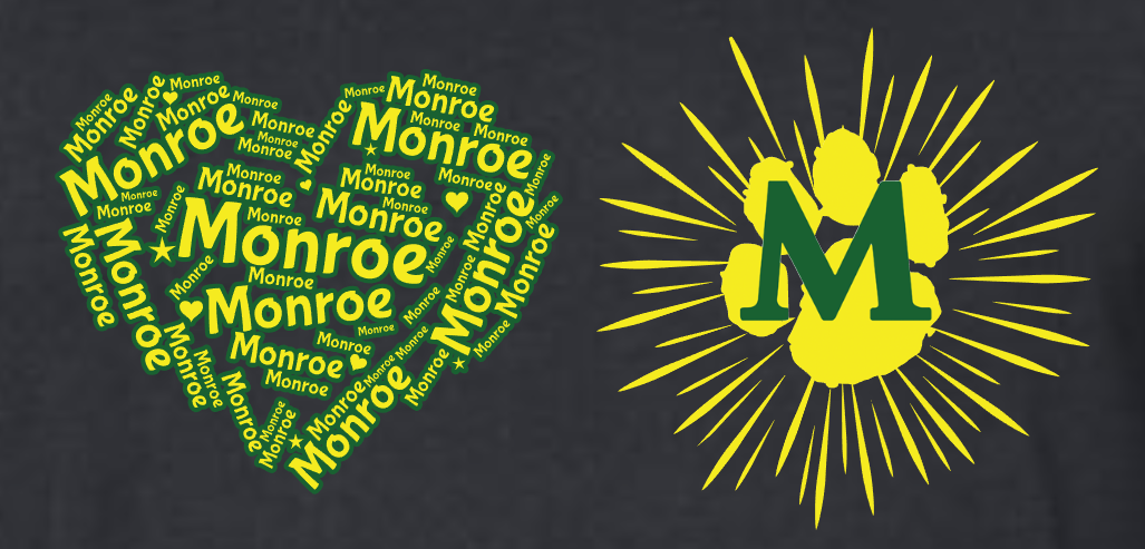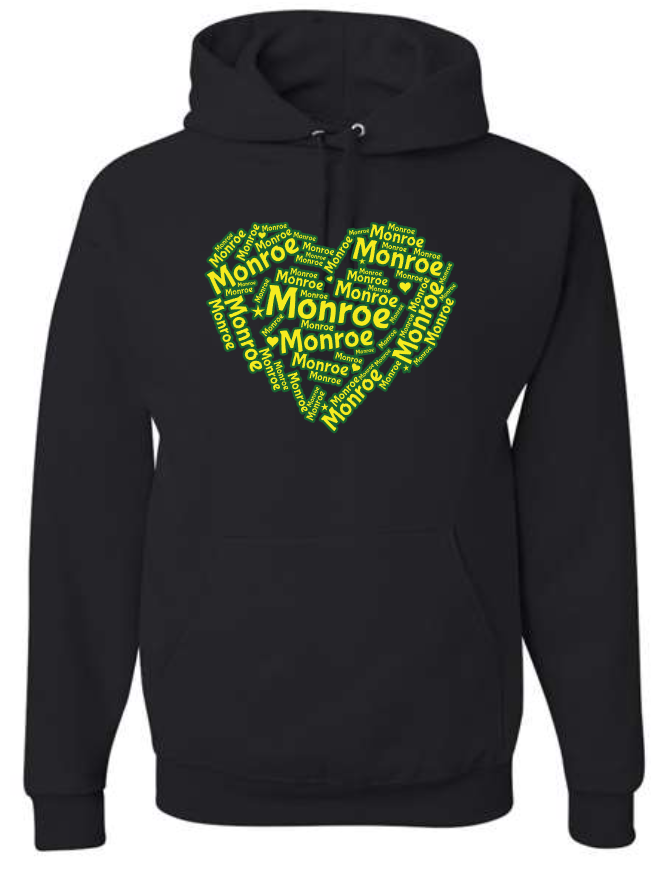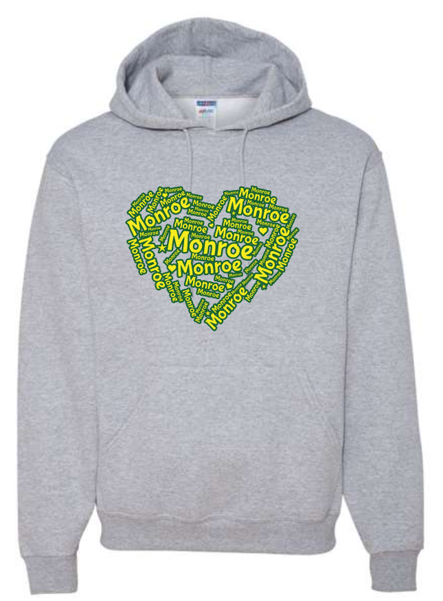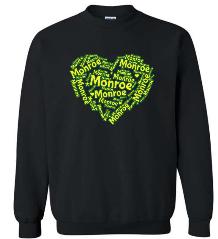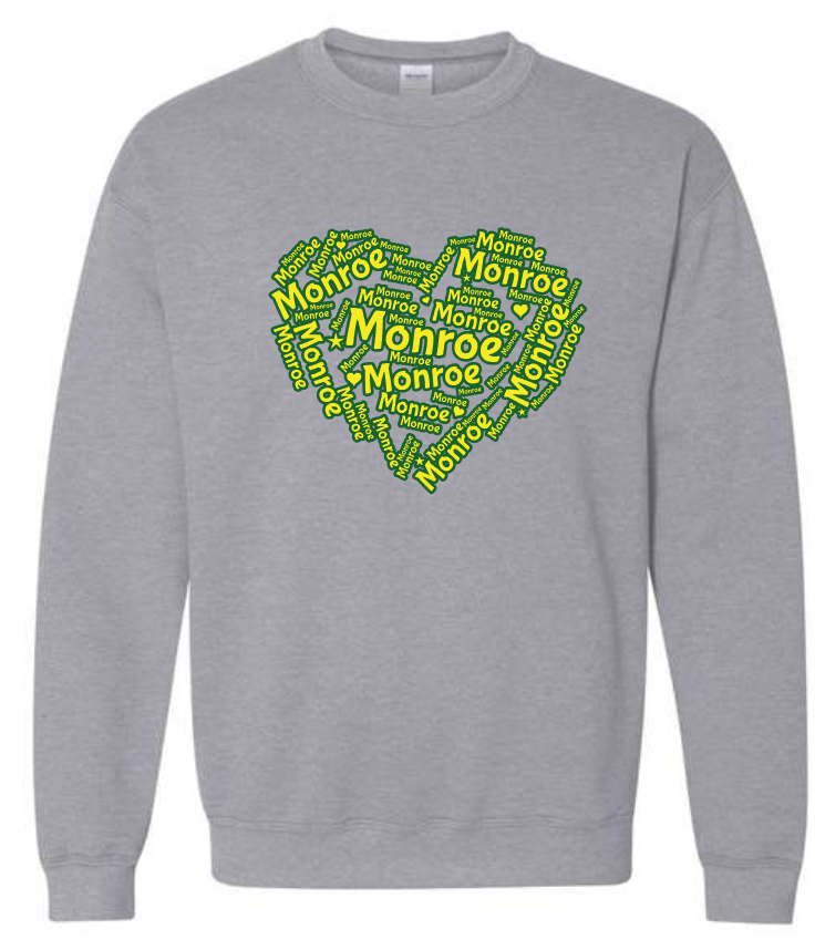 Monroe Elementary- Burst and Word Heart Designs CrewNeck and Hoodie Sweatshirts (ADULT Sizes)